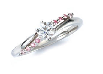 中央のダイヤモンドを中心に濃さの違うピンクダイヤを使って