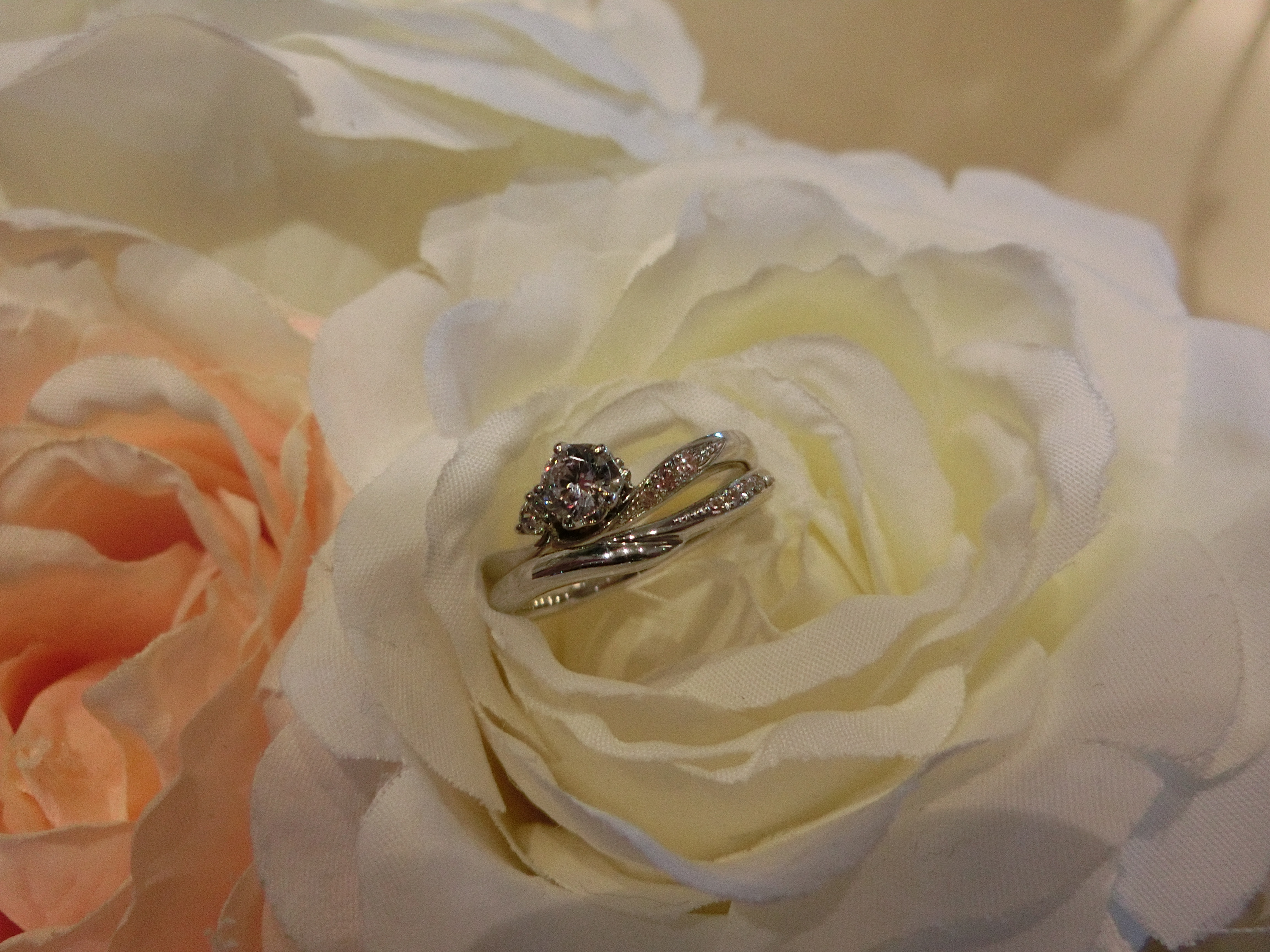 婚約指輪と結婚指輪がピッタリと重なり