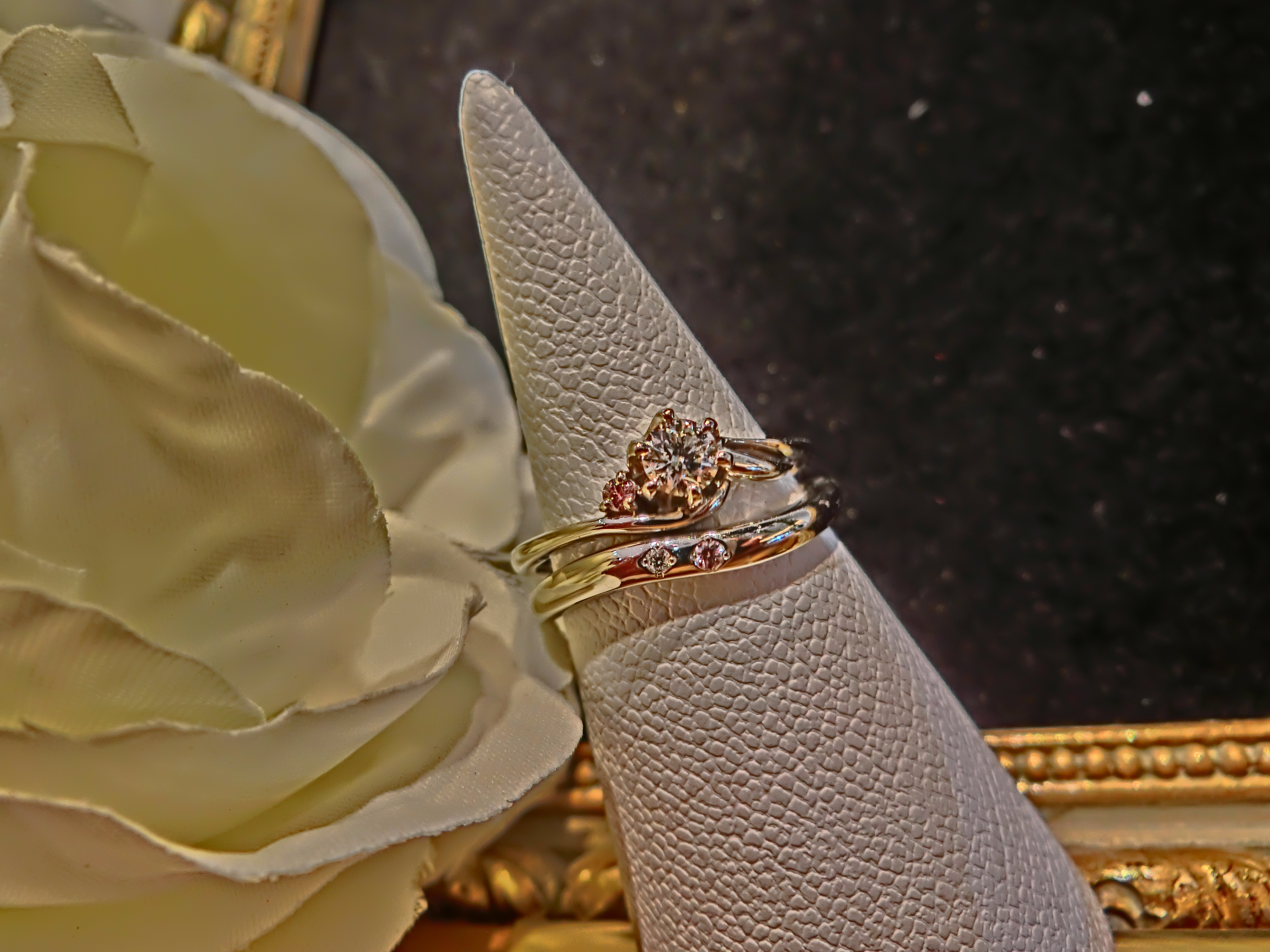 婚約指輪に使われるピンクダイヤモンドというのは主にサイドストーンとして使われます。