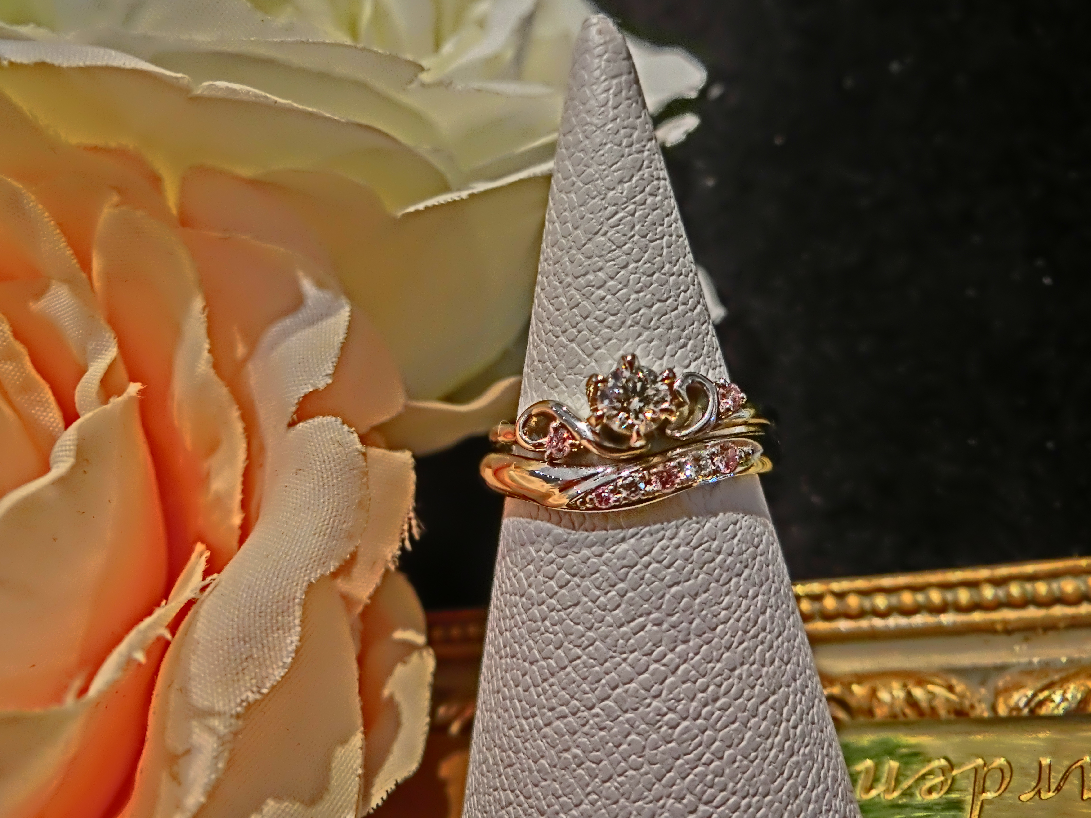 婚約指輪と結婚指輪を重ね合わせたとき