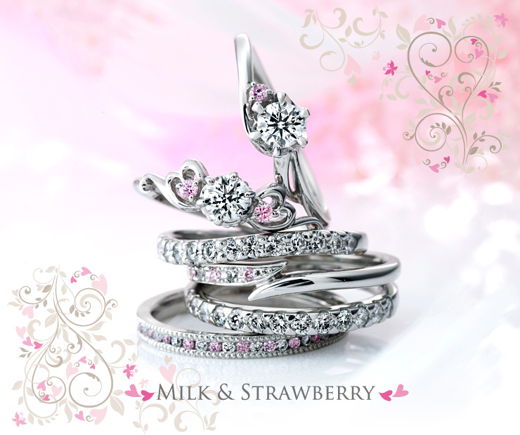 ミルク&ストロベリーの結婚指輪は、オプションとなりますが白のダイヤをピンクダイヤに変更したり、