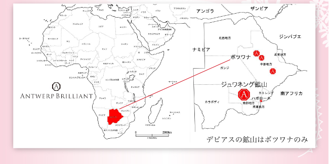 ※デビアスグループ・・・南アフリカ共和国 ヨハネスブルクに本社を持ち、ダイヤモンドの採掘・流通・加工・卸売を